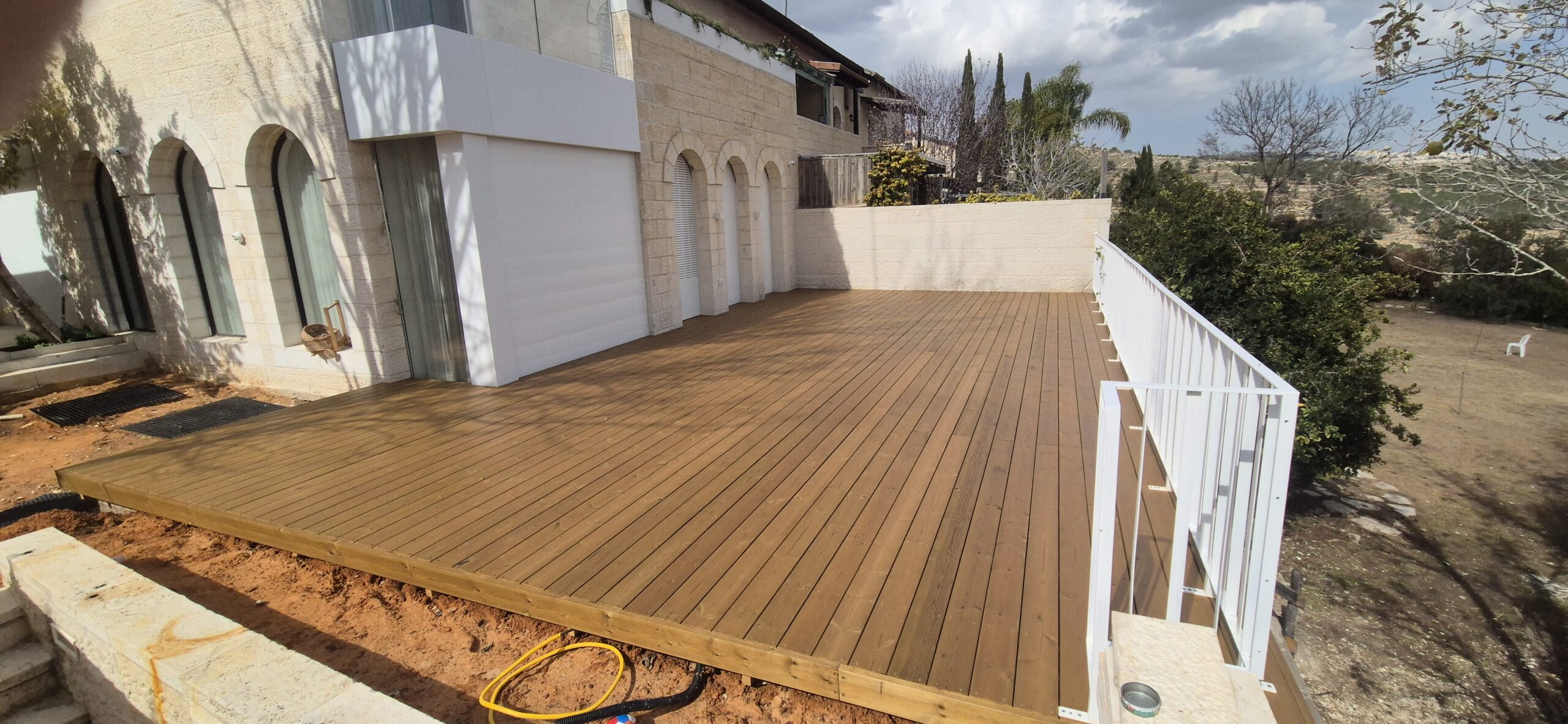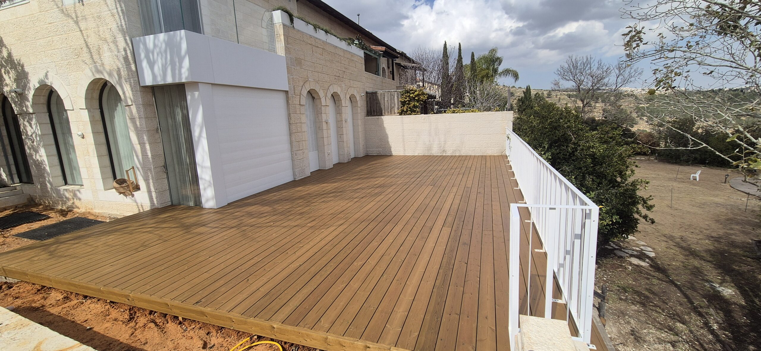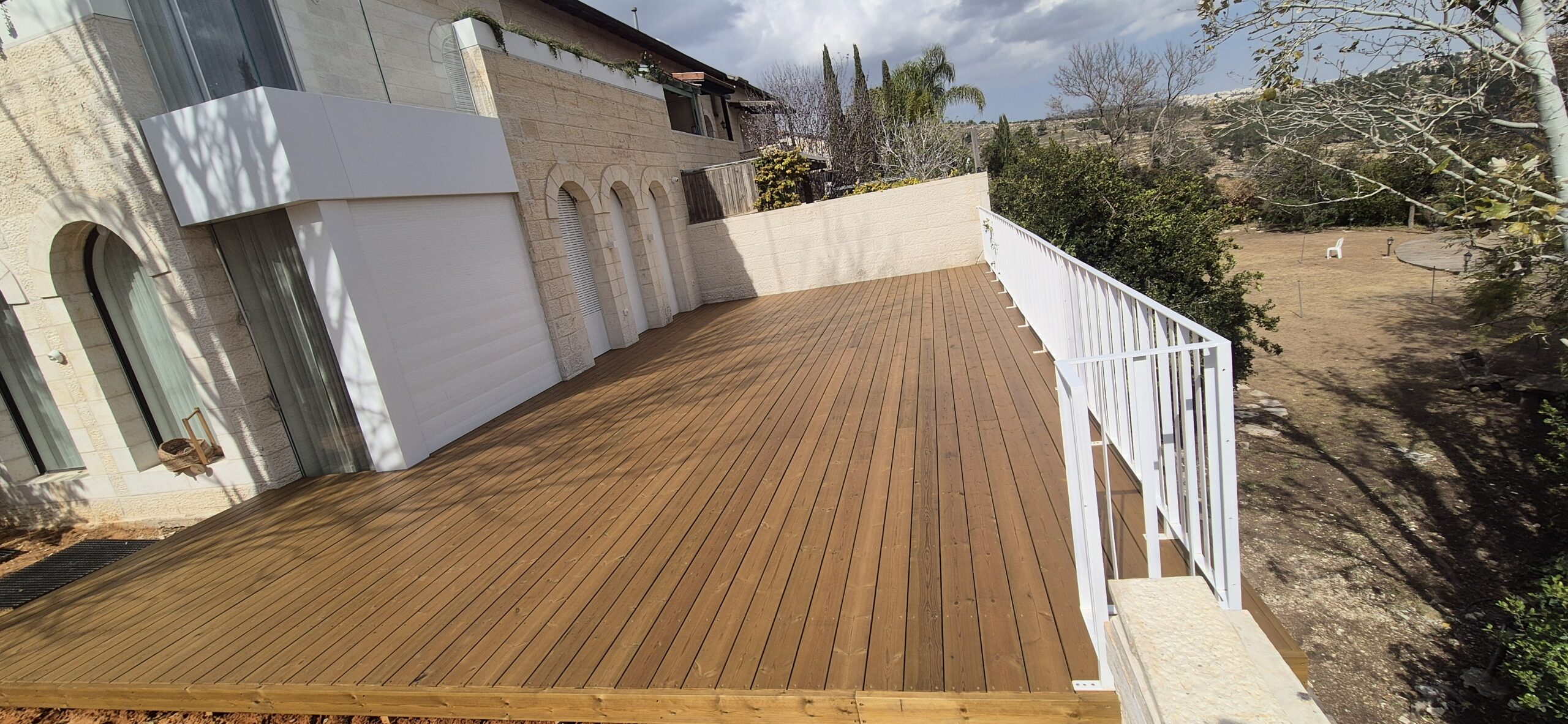 ♦ שילוב מדרגות, ספסלים, מסתורי חוץ ועציצים מובנים